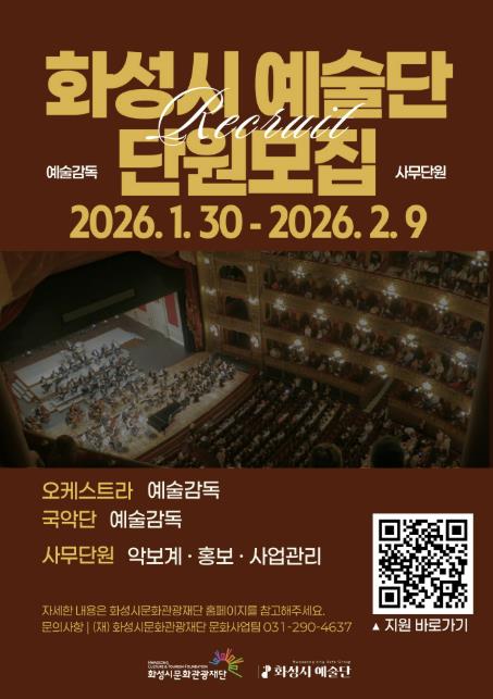 [세계로컬타임즈] (재)화성시문화관광재단은 2026년 ‘화성시 예술단’을 이끌어갈 예술감독과 사무단원을 모집한다.
