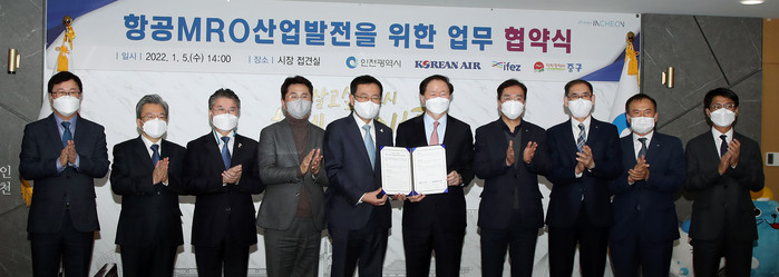 인천 중구는 지난 5일 인천시와 대한항공 간에 서명한 항공정비(MRO)산업 발전을 위한 업무협약식에 참석, 항공기 엔진정비 산업 활성화를 위해 적극 지원하기로 했다.
