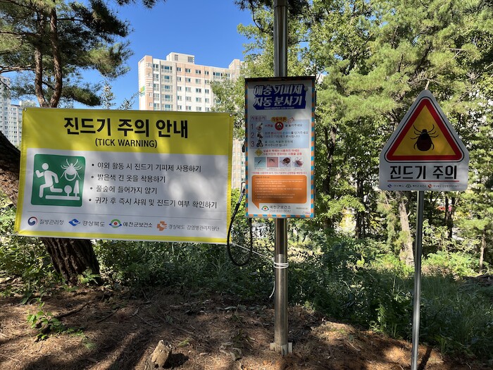 [세계로컬타임즈 이장학 기자] 예천군 보건소는 16일 경상북도 감염병관리과, 감염병관리지원단과 협업하여 진드기 매개 감염병 예방 및 홍보를 위해 ‘진드기 주의 표지판’을 시범 설치했다.
