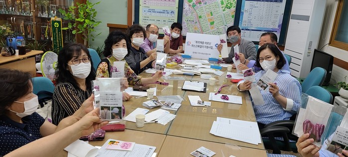 범계동 지역사회보장협의체는 일반마스크용 1,600개와 덴탈마스크용 8백 개 등 2,400점의 마스크 목걸이를 제작, 독거노인 대상 공동주택 현관 우편함을 통해 전달했다.