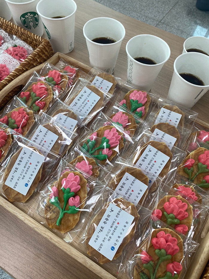11일 오전 직장 내 갑질을 근절하고 직원 간에 소통하는 직장분위기 조성을 위해 카네이션 쿠키 이벤트를 진행했다. 원장을 비롯한 간부들이 상호 존중의 의미를 담아 카네이션 모양의 쿠키를 교사들에게 전달하고, 중증장애학생을 위해 최선을 다한 순회교사에게 감사의 마음을 전달했다.