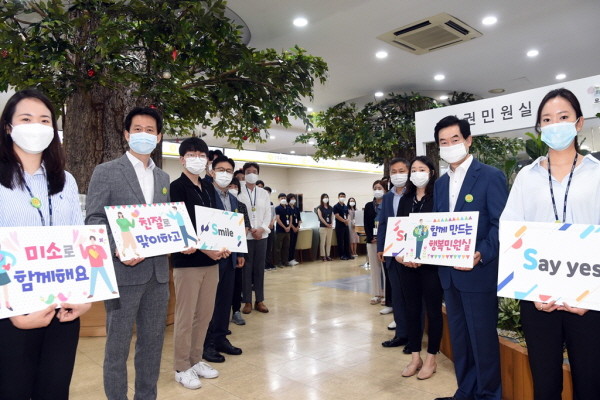 이번 친절3S 캠페인은 간부공무원들이 솔선수범해 직원들의 친절을 독려하고 생활화하기 위해 안병용 시장을 비롯해 황범순 부시장, 고진택 자치행정국장이 참여했다.