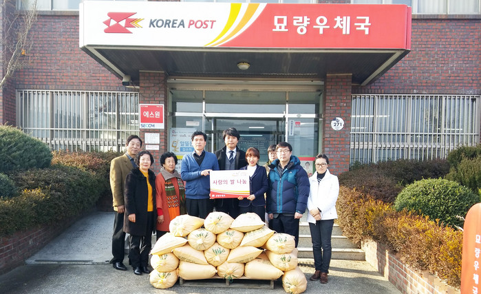 [세계로컬신문 이남규 조사위원] 전남 영광군 묘량면 묘량우체국(국장, 이승학)은 지난 20일 어려운 이웃을 위해 사랑의 쌀 나눔 행사를 열었다.