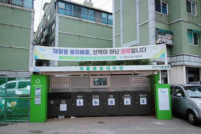 | ▲ 계양구가 설치한 재활용품 분리배출을 위한 재활용 동네마당을 통한 자원 리싸이클링으로 인천 지역 환경을 선도하고 있다. (사진=계양구) |