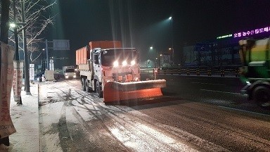 시는 우선, 제설노선에 순찰조를 편성 운영했고, 순찰중 제설이 필요한 구간 발생 즉시 도로상황실로 통보해 신속한 제설작업이 이뤄지도록 상황체계를 구축·운영했다.