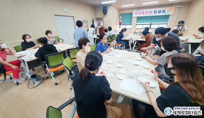 15일 김제시에 따르면 지난 14일 센터 교육장에서 아이돌보미 50명을 대상으로 업무상 정보를 공유하고 정신·신체적 건강 유지활동과 포슬린아트 커플찻잔 만들기 체험 등의 집담회가 진행됐다.