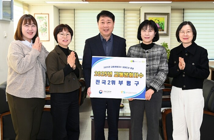 부평구는 최근 국토교통부 주관, 한국교통안전공단이 실시한 ‘2025년 교통문화지수’ 평가 결과, 동일그룹(전국 69개 자치구)에서 2위를 달성했다고 밝혔다.