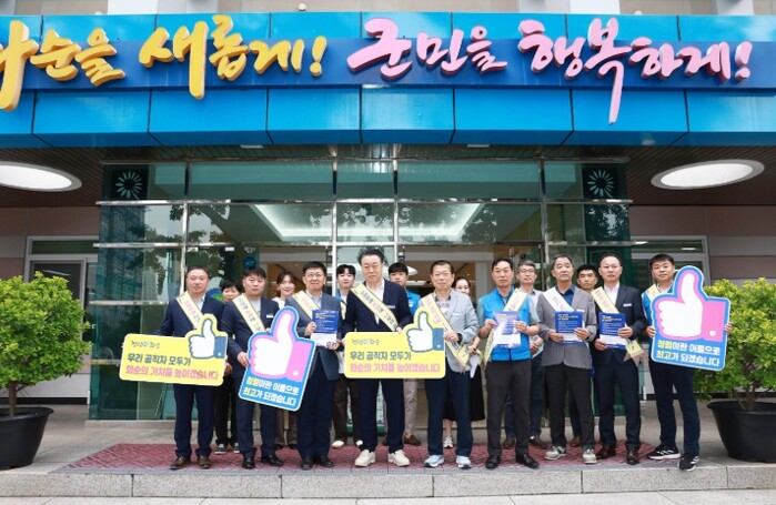 아침 출근길에 전 직원과 민원인을 대상으로 전단을 배부하고, 어깨띠와 손팻말 등을 활용해 공직자 스스로 청렴 기준을 지킬 수 있도록 참여를 독려했다.