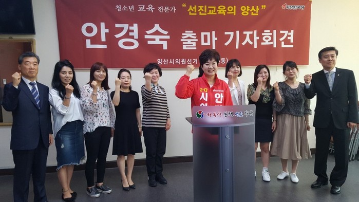 안 후보는 기자회견에서 "출마를 위한 많은 준비과정에서 늦은 출발을 했다"고 밝힌 뒤 "양산 청소년들을 글로벌 인재로 육성하기 위해 최선을 다하겠다"고 약속했다.