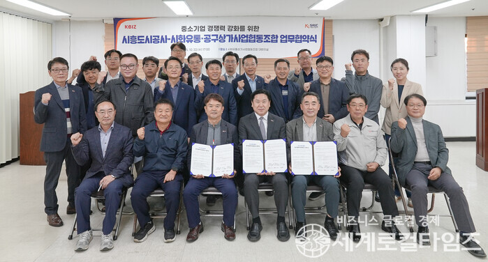 [세계로컬타임즈] 시흥도시공사(사장 유병욱, 이하 공사)는 지난 22일 종합산업용품 제조 및 판매사업 협력 공동체인 ‘시화유통상가사업협동조합 및 시화공구상가사업협동조합(이하 협동조합)’과 관내 중소기업 경쟁력 강화를 목표로 하는 업무협약을 체결했다고 밝혔다.