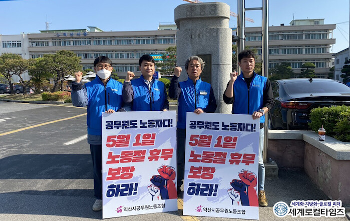 1일 익산시공무원노동조합은 “익산시 공무원들이 1일 ‘근로자의 날’을 맞아 특별휴가로 쉬게 된다”며 “‘공무원 노동자’로서 권리를 보장받기 위해 ‘근로자의 날 휴무’를 강력한 건의를 강력하게 건의해 받아들여진 결과”라고 전했다.