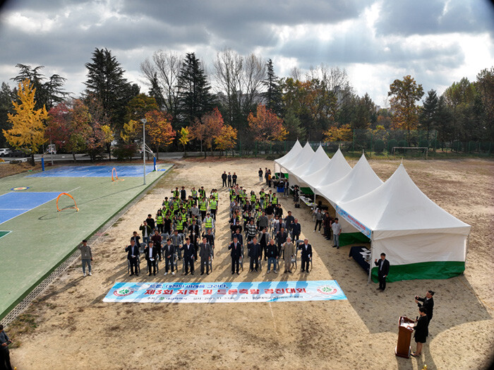 ▲지난 3일 충남대학교 농생명대학 운동장에서 ‘제3회 지적 및 드론측량 경진대회’가 진행되고 있다. (사진제공=대전시) |