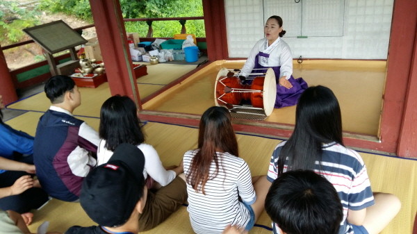 | ▲ 거창군이 운영하는 '정자따라 물길따라 문화유산 기행' 프로그램에 참여한 시민들이 국악공연을 관람하고 있다.<사진제공=거창군청> |