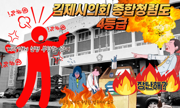 권익위가 발표한 2023년도 김제시의회 종합청렴도 평가 결과에 따르면 종합청렴도는 전체 5등급에서 최하등급을 면한 4등급에 머물렀다.