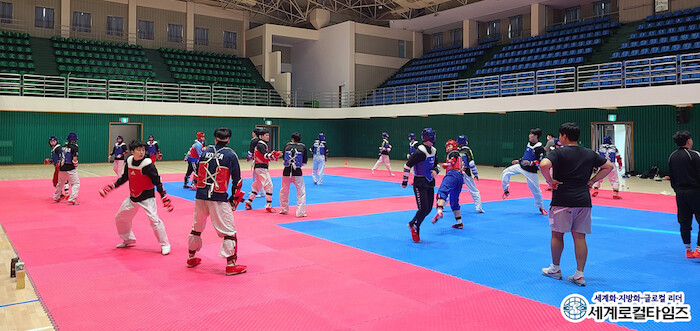 [세계로컬타임즈 조주연 기자] 전국체전에 출전하는 전북도 태권도 대표팀이 김제에서 전지훈련을 갖고 있다.