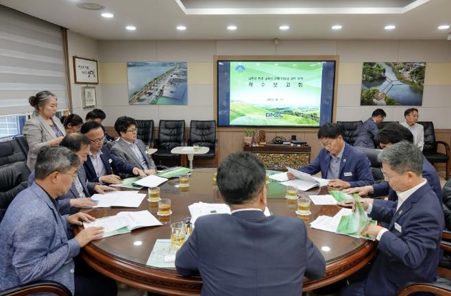 이날 보고회에는 전진선 군수를 비롯해 부군수, 4개 국 국장, 관련 부서 과장 및 실무자들이 참석했으며, 용역사로부터 과업 수행 계획을 청취하고 사업 추진 방향에 대한 다양한 의견을 나누는 시간을 가졌다.