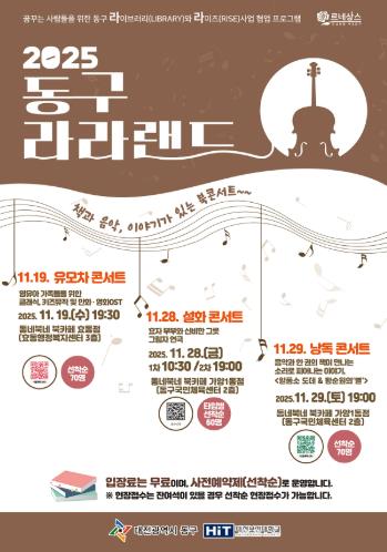 한편, ‘동구 라라랜드’ 프로그램에 대한 자세한 사항은 동구 도서관운영과 도서관정책팀으로 문의하면 된다.