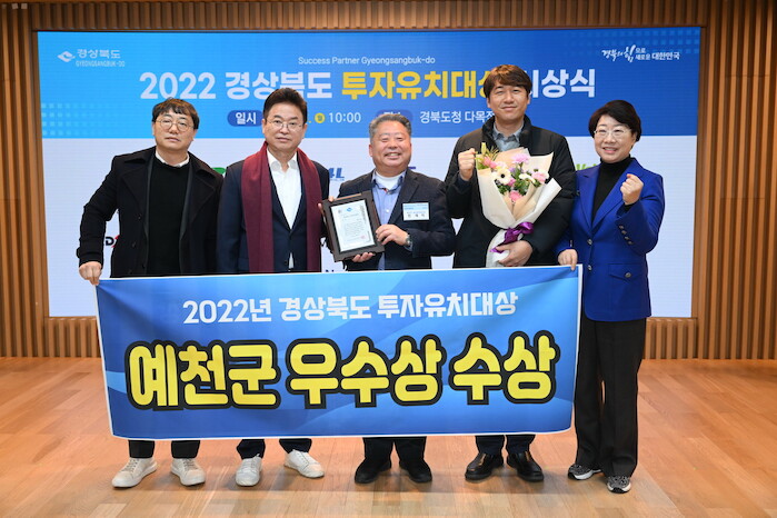 [세계로컬타임즈 이장학 기자] 예천군은 ‘2022년 경상북도 투자유치대상’ 평가에서 시·군 자치단체 부문 우수상을 수상했다고 27일 밝혔다.
