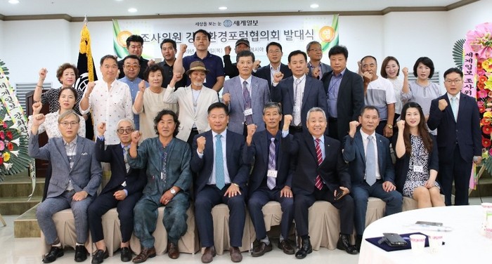 | ▲ 세계일보 조사위원 강화환경포럼협의회 발대식을 마치고 전체 기념촬영을 하고있다. |