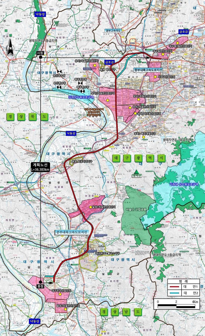 | ▲ 대구산업선 노선도(안). (사진=대구시) |