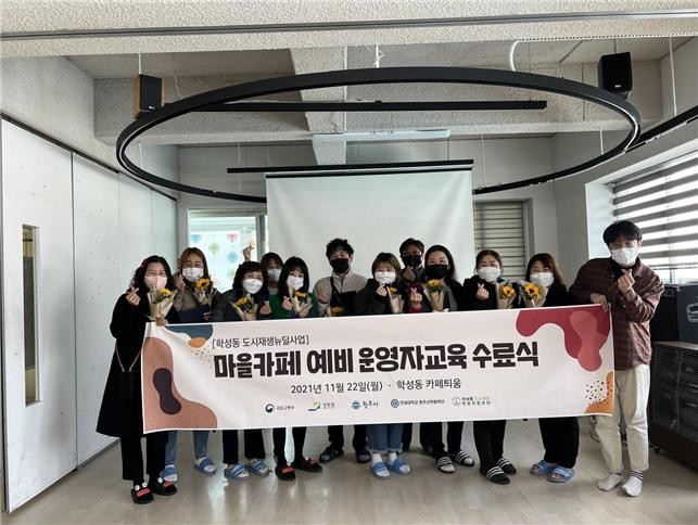[세계로컬타임즈 김재민 기자] 원주시와 학성동 도시재생현장지원센터가 지역 주민의 자생적 성장 기반 마련을 위해 운영한 ‘마을카페 예비 운영자 교육’ 수료식이 22일 학성동 틔움 카페에서 열렸다.