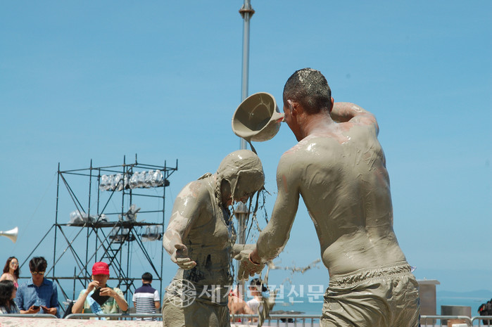 [세계로컬신문 조주연 기자] 13일 막을 올린 충남 보령 머드축제(이하 머드축제)가 개막 후 첫 주말을 맞이해 관광객들로 인산인해다.