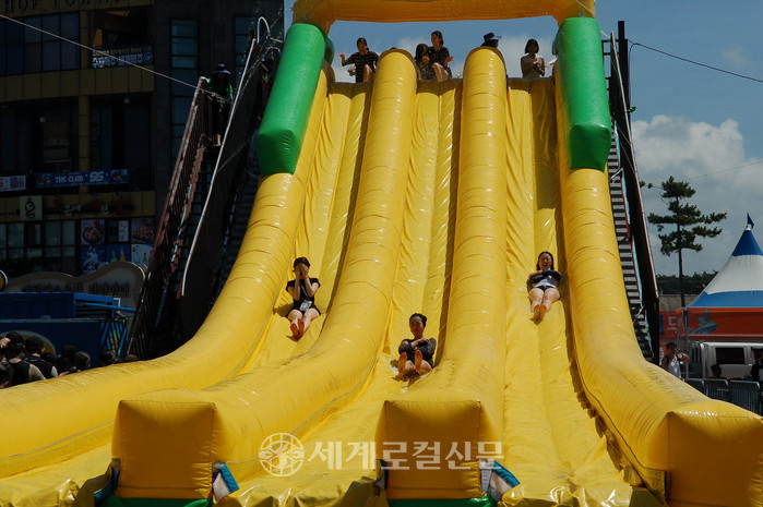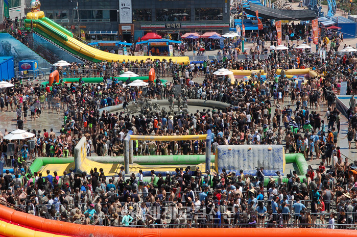 | ▲ 머드축제 행사장 내 물놀이 시설을 즐기는 관광객들. <사진제공=보령시> |