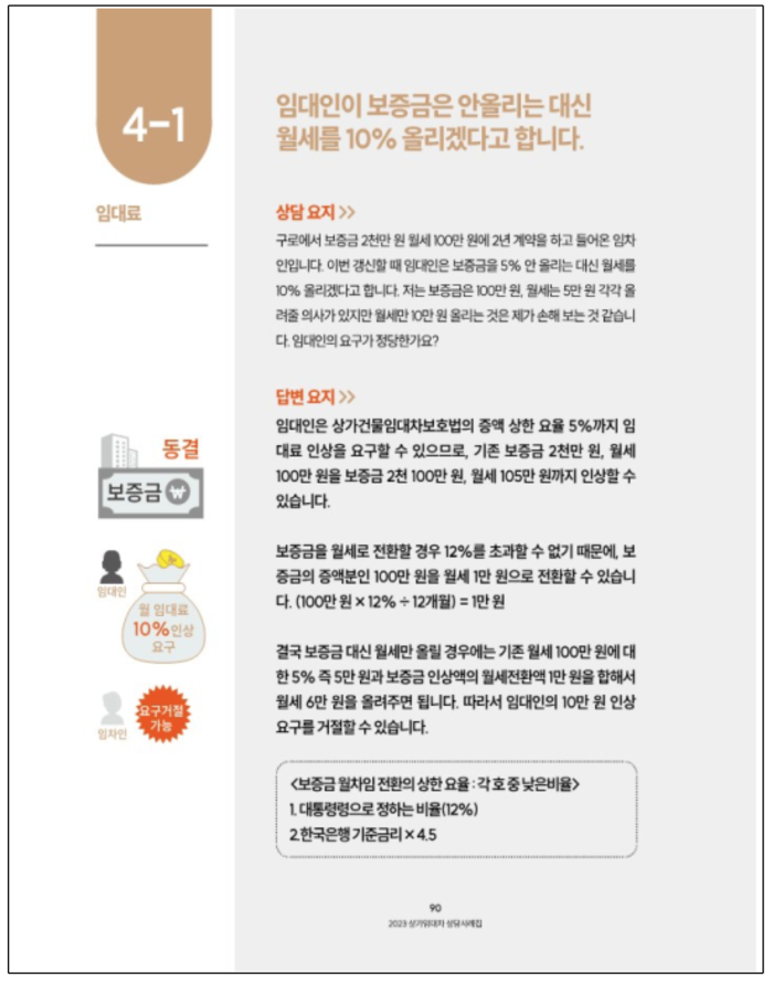 [세계로컬타임즈 이효진 기자] 서울시는 상가임대차 기간, 권리금 회수 및 임대료 조정 등 임대차 과정에서 임대인과 임차인이 알아야 할 핵심 내용과 자주 발생하는 분쟁유형을 알기 쉽게 설명한 ‘2023년 상가임대차 상담사례집’을 발간했다.