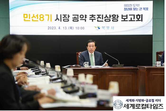 [세계로컬타임즈 김명진 기자] 목포시가 '희망찬 도약! 청년이 찾는 큰 목포' 실현을 위해 지난 13일 시청 상황실에서 민선8기 공약 추진상황 보고회를 개최해 그 동안의 추진상황을 점검하고 본격적인 공약사항의 이행을 다짐했다.
