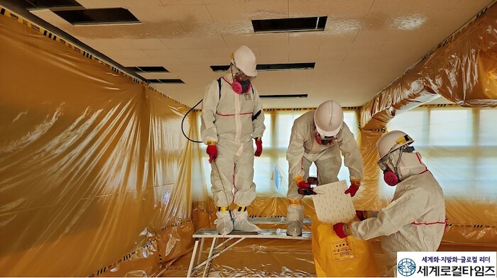 ▲습윤 및 석면 해체 제거작업(사진=영암군) |