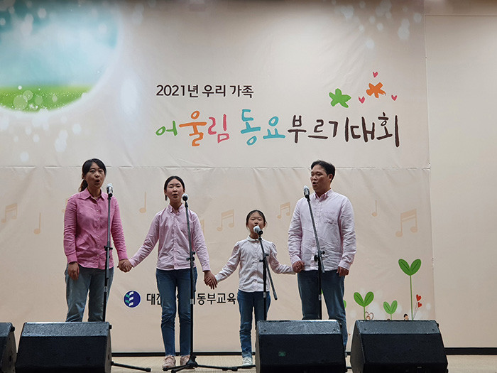 [세계로컬타임즈 민순혜 기자] 대전광역시동부교육지원청은 지난 19일 동부교육지원청 대강당에서 동부 관내 초등학교 재학생 가족 10팀이 참가한 가운데 ‘2021년 우리 가족 어울림 동요부르기대회’를 개최했다.