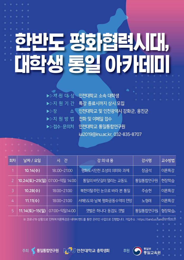 | ▲ '한반도 평화협력시대 대학생 통일 아카데미' 홍보 포스터. (사진=인천대 제공) |