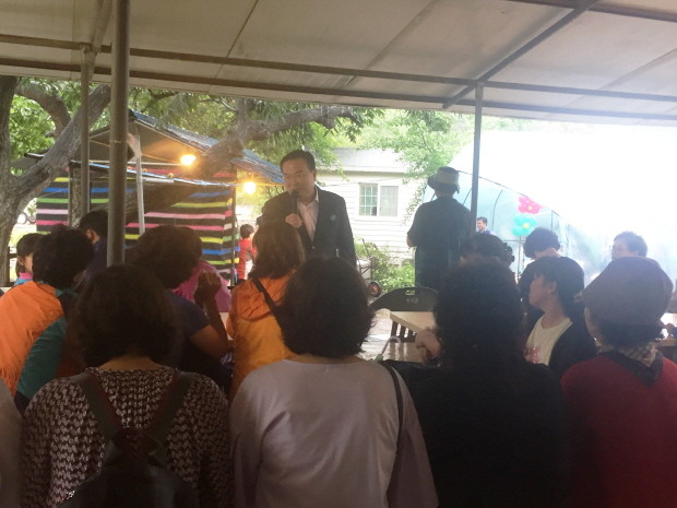 | ▲ 지난 15일 이성호 양주시장이 사이버농업인연구회 팜파티(Farm-party)에서 축사를 하고 있다.<사진제공=양주시청> |