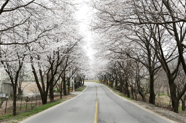 | ▲가평군 청평면 삼회리에 활짝 핀 벚꽃길.<사진제공=가평군청> |