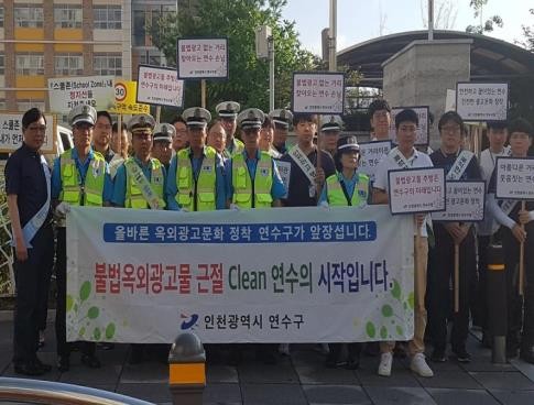 연수경찰서, 연수구 모범운전자회, 연수구 녹색어머니회 등 40여명이 참가한 가운데 열린 이번 캠페인은 통학로 주변 보행환경을 위협하고 교통시야를 방해하는 현수막 등 불법옥외광고물을 중점 정비하고, 불법옥외광고물의 위해성과 안전한 도로환경 유지에 대한 사회적 인식 제고를 위한 것이다.