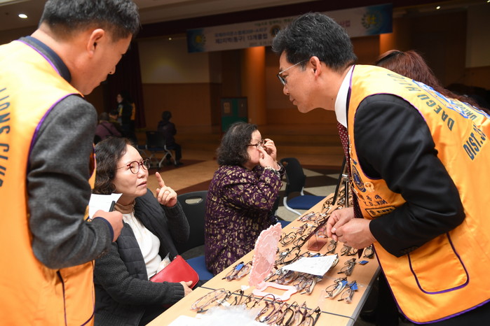 이날 국제라이온스협회 제2지역(동구)은 그동안 안경이 없어 생활에 불편을 겪고 있는 노인과 새로운 안경이 필요한 노인분을 찾아서 한분 한분 시력검사를 거쳐서 맞춤형 안경을 지원했다.