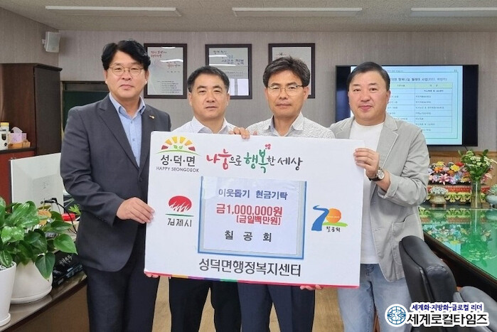 김제시 관계자는 “어려운 시기에 소중한 성금을 기탁해 주신 칠공회 회원분들께 감사드린다”고 밝혔다.