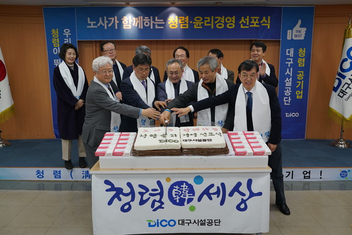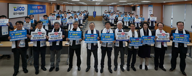 [세계로컬타임즈 최영주 기자] 대구시설공단은 4년 연속 청렴도 우수기관 달성 기원과 청렴 문화 확산을 위한 ‘노사가 함께하는 청렴·윤리경영 선포식’을 개최했다.
