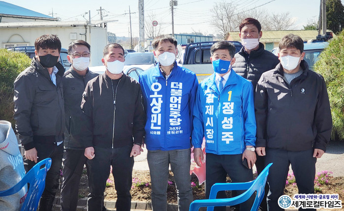 정 예비후보는 이날 교월동 봉화마을 주민들의 ‘양심화단’ 가꾸기와 청하면 영농발대식에 동참했다.