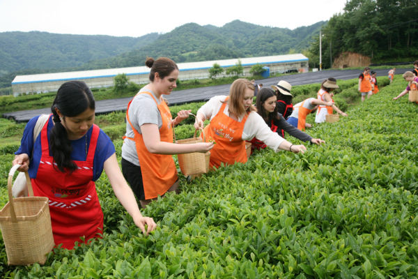 | ▲ 보성다향대축제가 다음달 3일부터 7일까지 5일간 한국차문화공원과 보성차밭 일원에서 열린다. 사진은 외국인들이 녹차 수확을 체험하고 있는 모습.<사진제공=보성군청> |