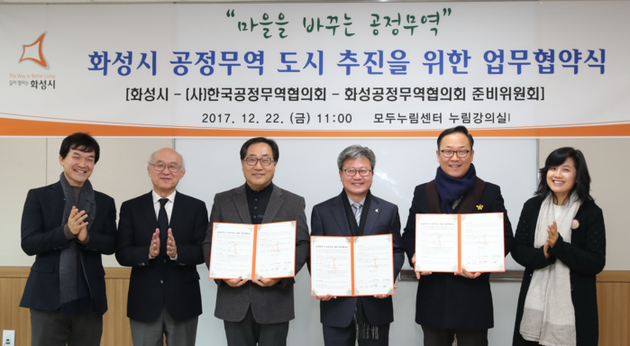 시는 22일 모두누림센터에서 (사)한국공정무역협의회, 화성공정무역협의회 준비위원회와 공정무역도시 조성을 위한 업무협약을 체결했다.