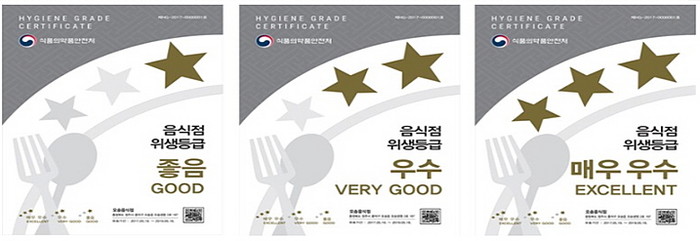 이 제도에 따라 식품의약안전처가 음식점의 위생관리 정도를 평가해 수준에 따라 매우 우수(★★★), 우수(★★), 좋음(★) 3단계로 등급을 부여한다.