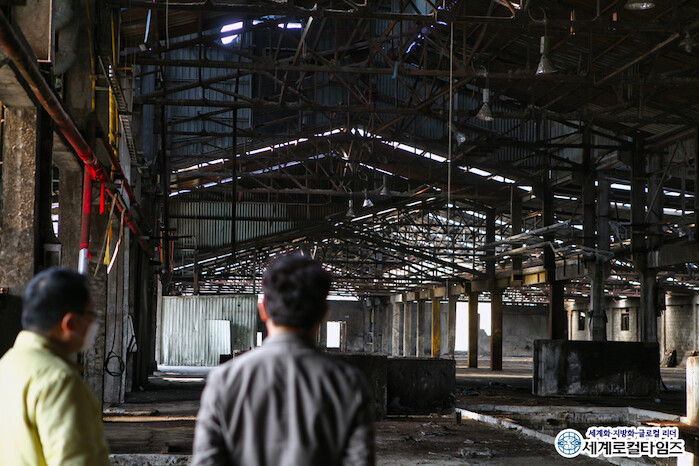 ▲정헌율 익산시장이 구 금강농산 건물안을 살피고 있다.(2021.03.08) (세계로컬타임즈 DB) |