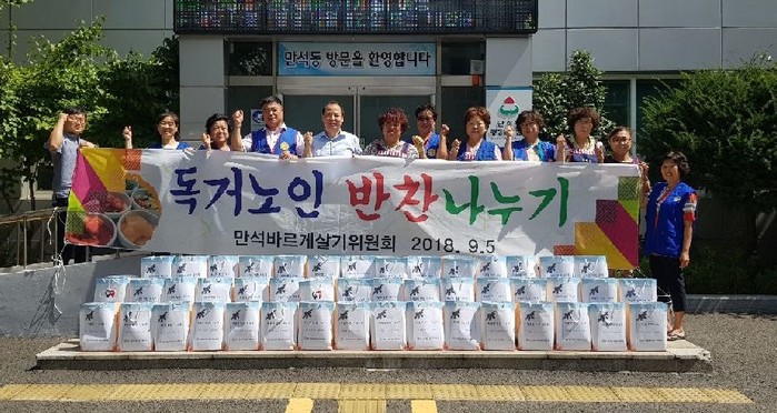 지난 5일 바르게살기 위원회 회원들은 봉사를 위해 이른 아침부터 만석동 행정복지센터 광장에 모여 견과류 멸치볶음, 명태조림, 짠지 등 맛있고 영양이 가득한 반찬을 조리하며 구슬땀을 흘렸으며, 회원들은 반찬세트를 관내 독거노인 50여 명에게 직접 전달하면서 어르신들의 건강을 기원했다.