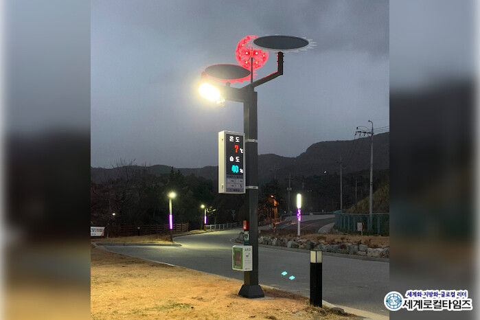 ‘변산마실길 응급안전 편의장치 설치’ 사업은 비상호출벨, 무선 제세동기, 블랙박스, 미세먼지 알림이, 경관조명이 통합된 태양광 가로등을 설치하는 사업이다.
