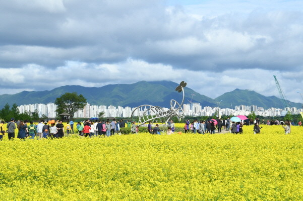 | ▲ 구리한강시민공원에서 유채꽃을 관람하고 있다. <사진제공=구리시> |