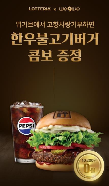 이벤트 기간 동안 롯데리아 전용 고향사랑기부제 이벤트 페이지를 통해 10만 원 이상 기부한 고객 전원에게 롯데리아 ‘한우불고기버거 콤보 쿠폰(1매)’이 제공된다. 기부는 전국 롯데리아 매장 내 포스터에 게재된 고향사랑기부제 참여 QR코드 또는 롯데잇츠, 엘포인트 앱을 통해 참여할 수 있다.