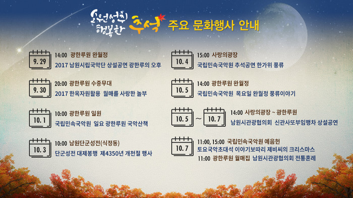 | ▲ 남원시가 진행하는 추석맞이 주요 문화행사.<사진제공=남원시청> |
