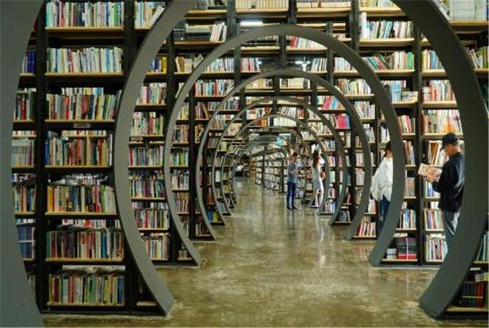 | ▲ ‘책벌레가 뚫고 지나간 공간을 사람들이 다니며 책을 찾는다’라는 공간 기획 의도를 형상화한 철제 원형 서가 (사진=서울시) |