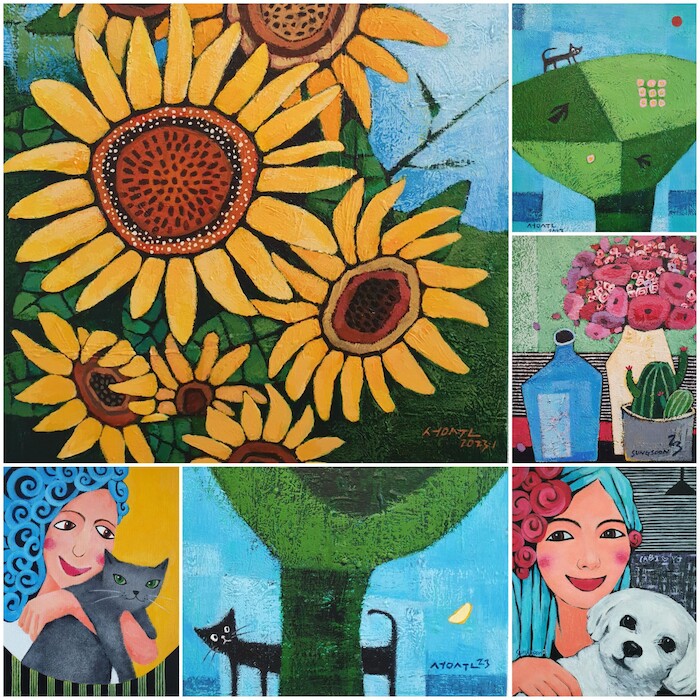 이번 전시회는 “천성순, 고향에서 열정을 꽃 피우다”라는 주제로 작가와 늘 가까이 있는 가족에 대한 재발견, 반려동물 고양이가 주는 미묘한 편안함 그리고 반구상 느낌의 자연, 정물, 선과 면으로 구성해 본 추상작품 등 23점을 선보인다.